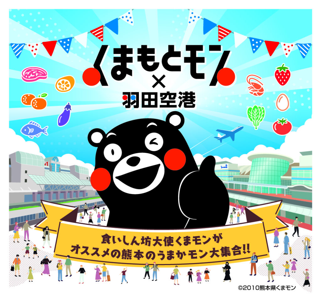 羽田空港第1・第2ターミナル内で1月10日(土)から1月31日(土)まで、熊本県産品(「くまもとモン」)を見る・知る・味わう・体験するプロジェクト「くまもとモン×羽田空港」が開催されています。期間中は、くまもとで活躍するつくり手たち15社の商品が第1ターミナル及び第2ターミナルに集合。羽田空港内飲食店11店舗とコラボしたくまもとモン限定メニューの提供や食いしん坊大使「くまモン」の登場、巨大ガチャガチャやじゃんけん大会で「くまもとのうまかモン(美味しいもの)」などが貰えるイベントの開催、各航空会社と連携した制服着用体験など、羽田空港が「くまもとモン」に染まる22日間をお届けします。