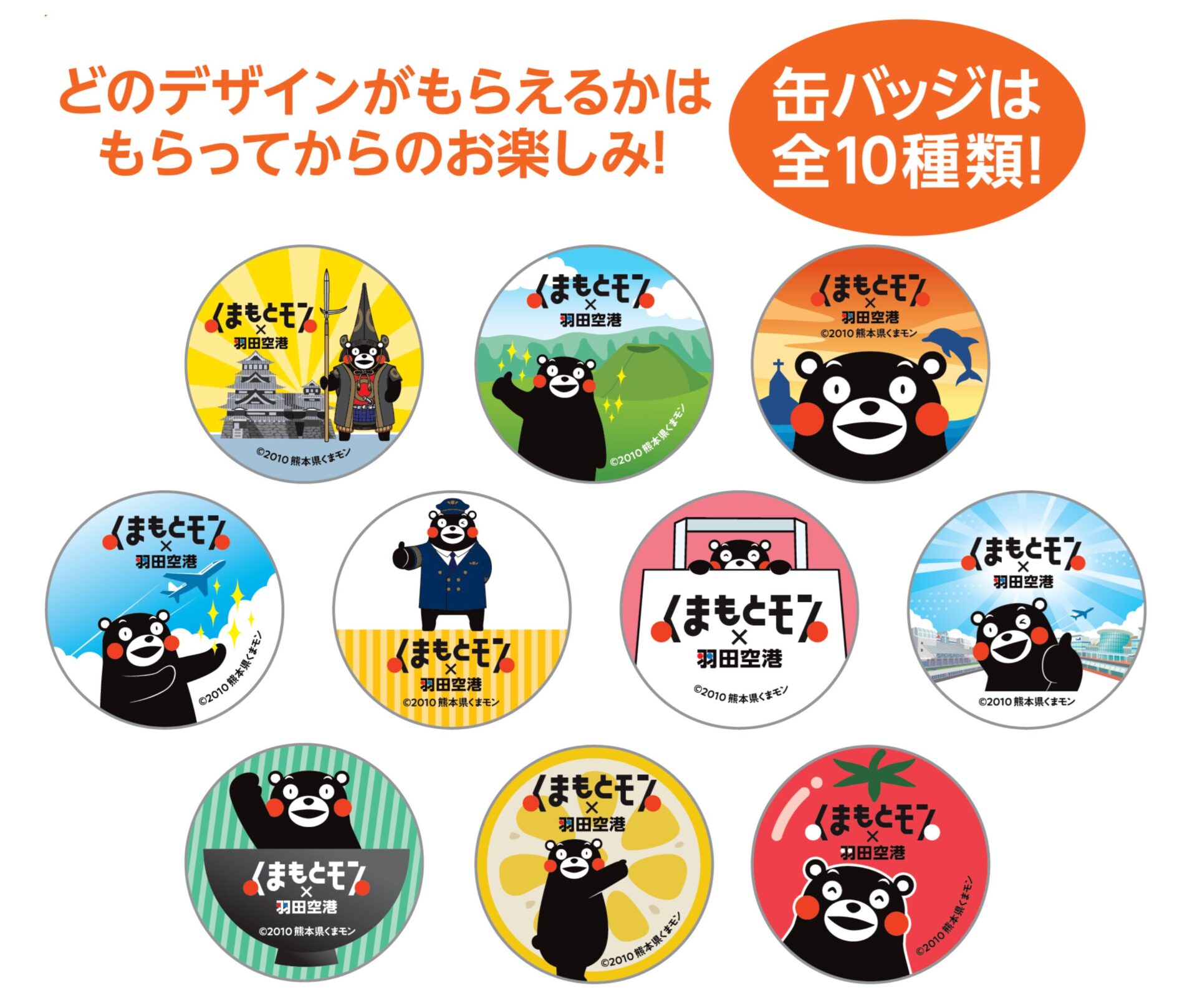 ※オリジナルくまモンの缶バッジは全10種類です。デザインはお選びいただけませんので予めご了承ください。